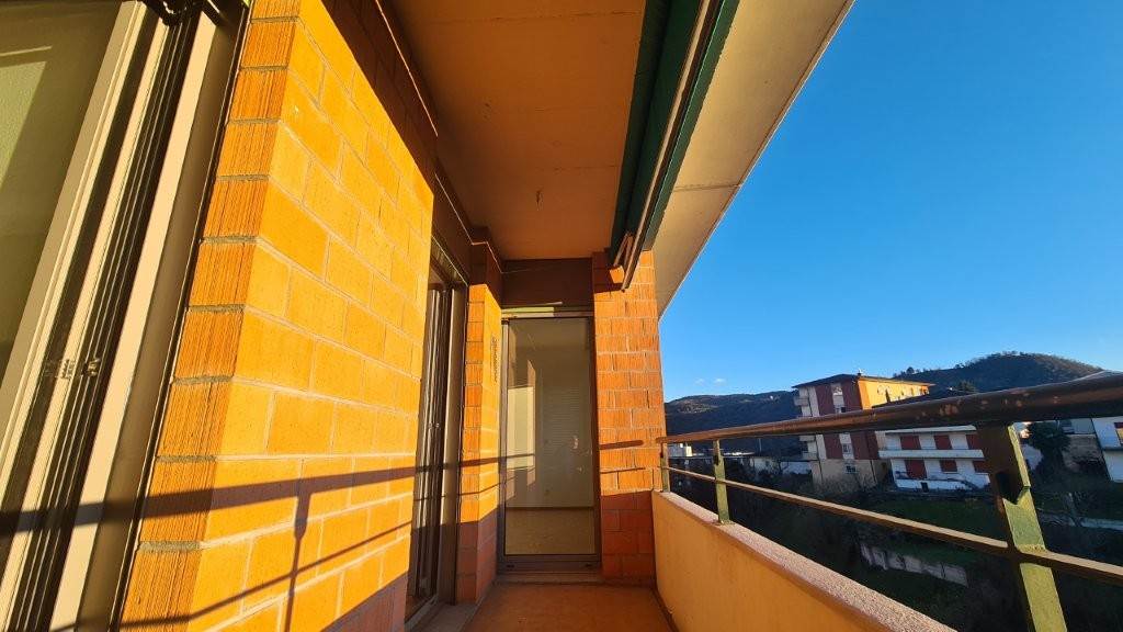 Entrance hall with built-in wardrobes, eat-in kitchen with new furniture, living room, bathroom, two large bedrooms, terrace running the length of the flat. There is also a private cellar on the ground floor and large communal laundry room.