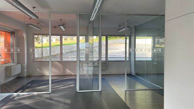 Suitable for administrative, commercial, exhibition, production and logistics offices. The upper floors, very bright and elegant and equipped with modern installations, are already divided into several rooms with soundproof glass partitions and can be used as executive offices, open-space offices, showrooms, conference rooms and a canteen with a fully equipped kitchen.