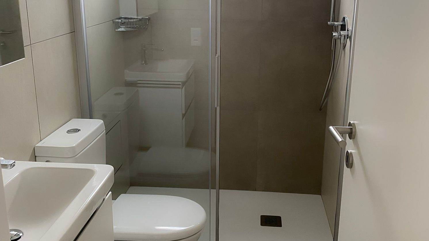 The sleeping area consists of two generously sized bedrooms and two bathrooms, one with a shower and one with a bathtub, offering both comfort and functionality.