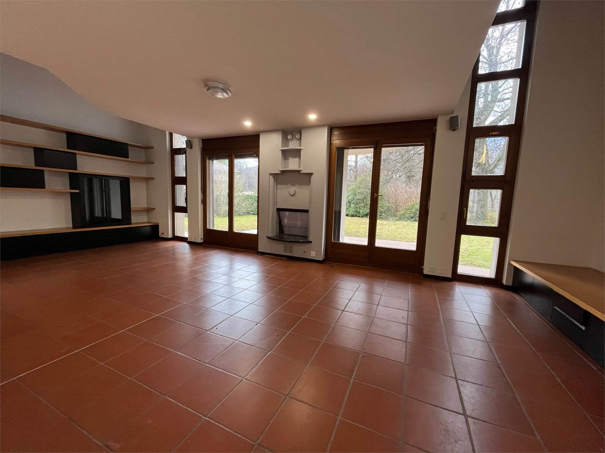 Entrando, ci accoglie un luminoso e spazioso salone doppio con camino e uscita diretta sull'ampio giardino, cucina completamente rinnovata nel 2018, sala da pranzo e bagno di servizio. Sullo stesso livello troviamo un monolocale/grottino con bagno e uscita sul giardino.