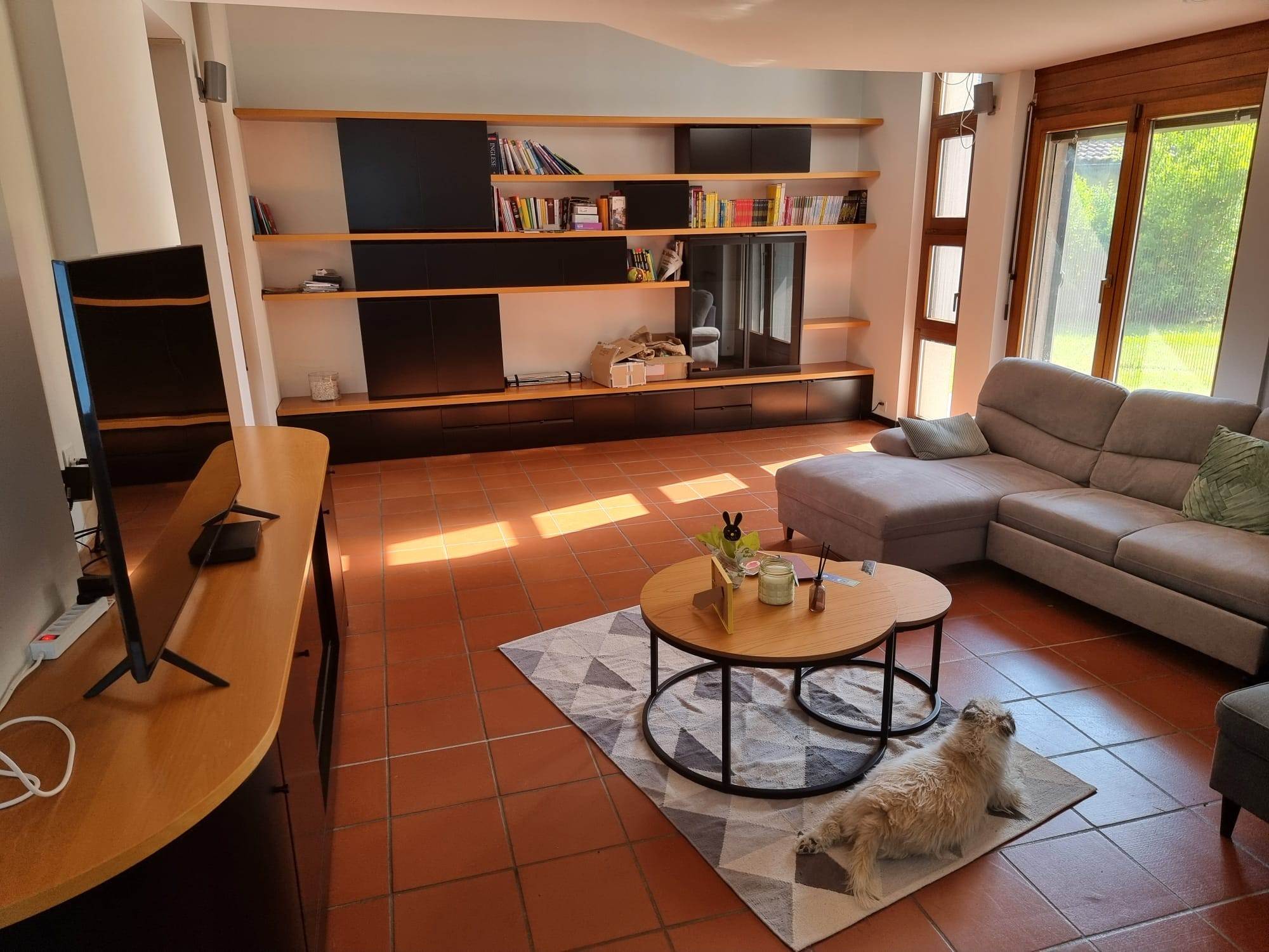 Entrando, ci accoglie un luminoso e spazioso salone doppio con camino e uscita diretta sull'ampio giardino, cucina completamente rinnovata nel 2018, sala da pranzo e bagno di servizio. Sullo stesso livello troviamo un monolocale/grottino con bagno e uscita sul giardino.