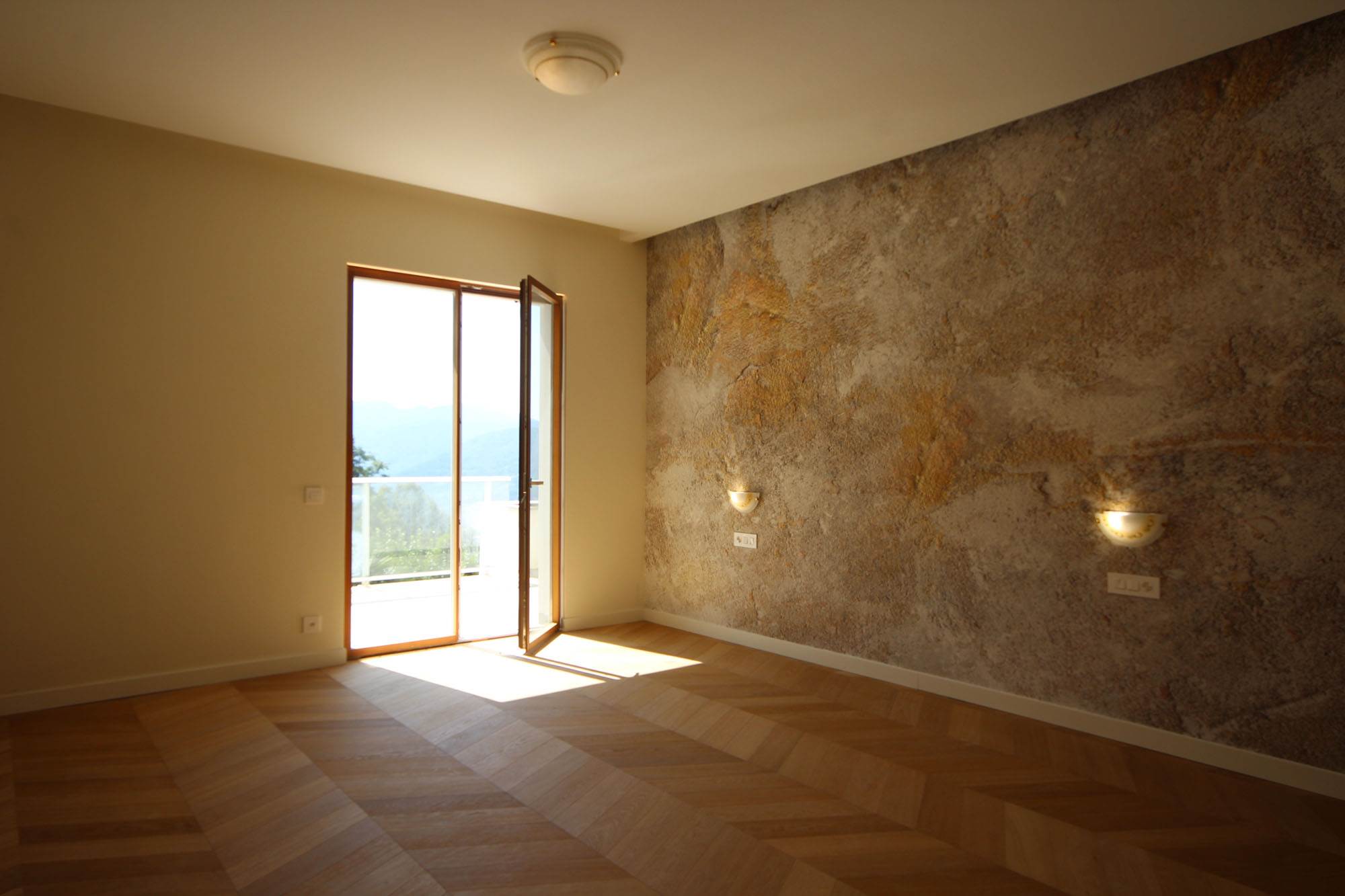 Al primo livello: atrio d’ingresso con lift privato, doppio soggiorno, cucina con