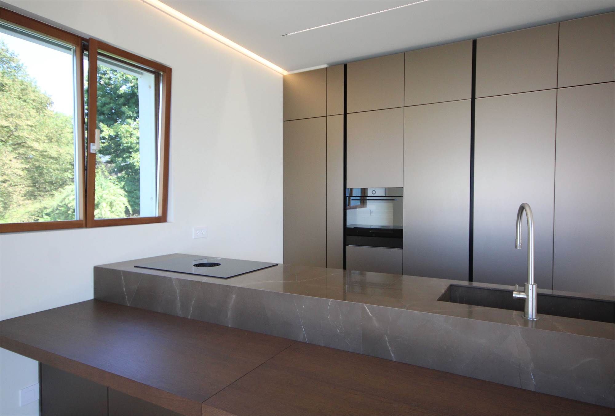 isola e spaziosa terrazza. Entrando nella zona notte troviamo un'ampia cabina armadio su misura, quattro grandi camere da letto con relativi bagni, ulteriore terrazza/giardino, ripostiglio. In fondo al corridoio troviamo un'area benessere con sauna, bagno turco, servizi, doccia con accesso alla piscina esterna;