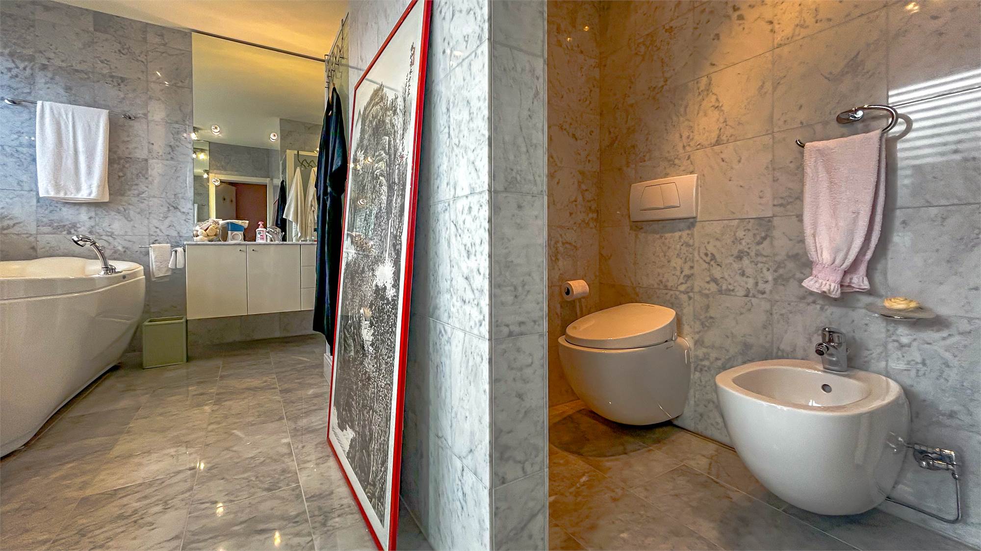 La residenza dispone di cinque camere da letto, due delle quali con bagno en suite. Le rimanenti camere sono servite da altri due bagni, finemente rifiniti e completi di vasca e doccia.