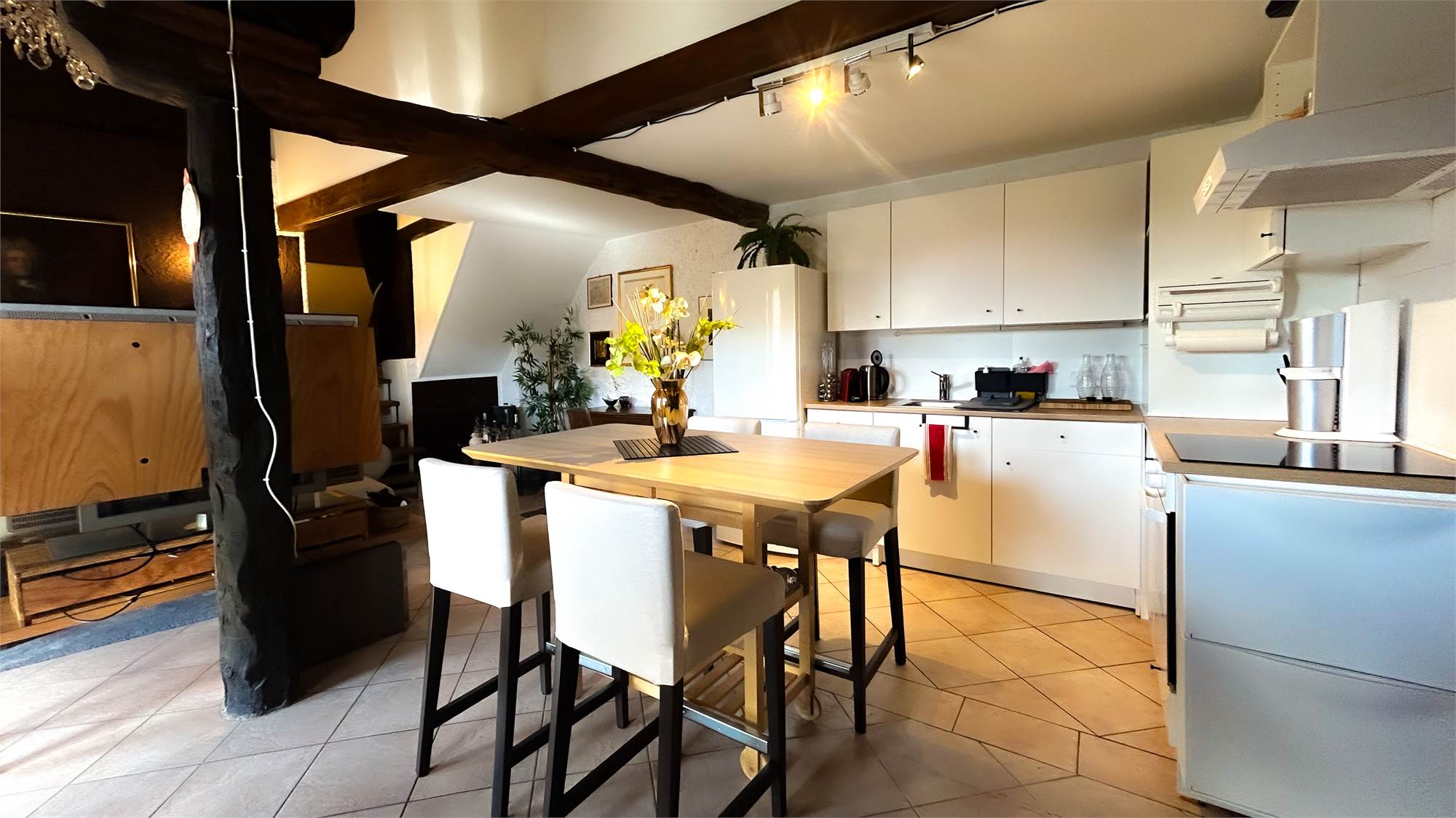 Da qui è possibile accedere al secondo appartamento di 3,5 locali, composto da una cucina con doppio soggiorno, due camere da letto e due bagni.