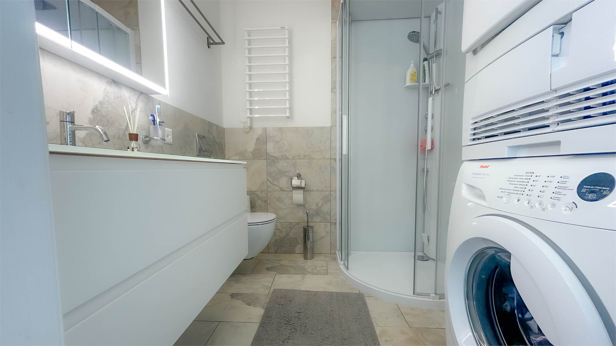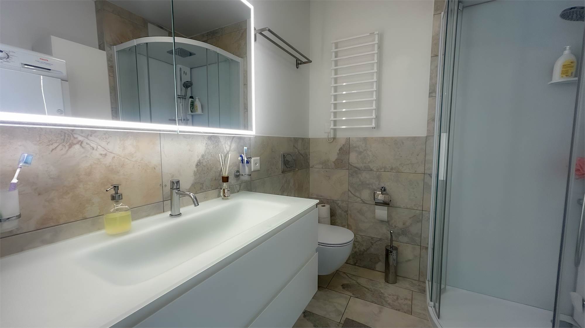 L’appartamento dispone di due camere da letto e di un bagno con doccia, caratterizzato da rifiniture di gusto, pensate per garantire comfort e funzionalità.